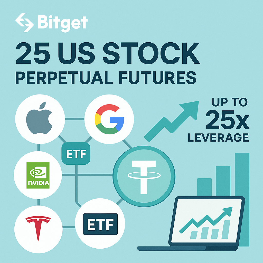 가상자산 거래소 비트겟(Bitget)이 미국 주식 기반 퍼페추얼 선물(USDT-M) 25종을 새롭게 추가했습니다. 이번 업데이트는 단순히 종목 수가 늘어난 차원이 아니라, USDT만으로도 세계적인 주식 종목을 최대 25배 레버리지로 거래할 수 있다는 점에서 의미가 큽니다.